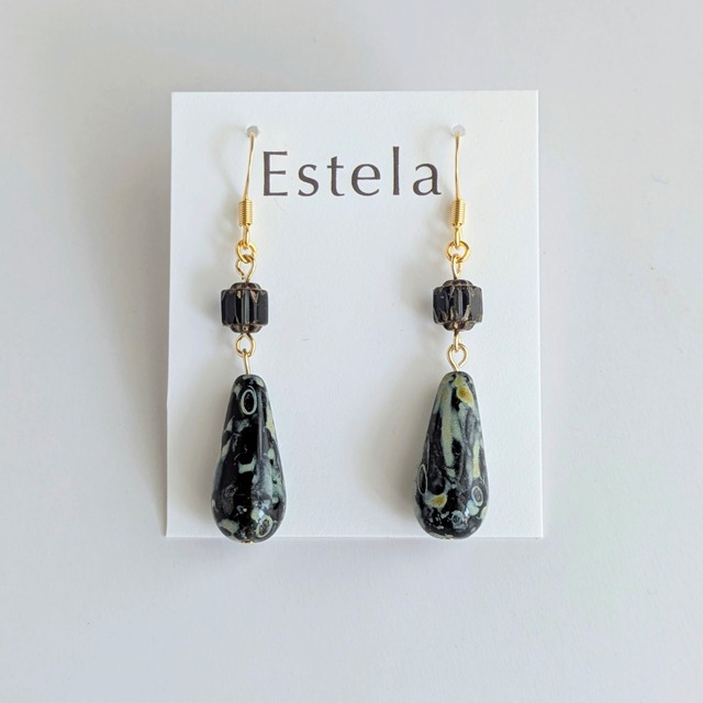 《夜空に瞬く星。》ブラックマーブルのロングピアス/イヤリング