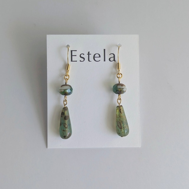 静かな緑を映す雫。 やわらかな白を含み、 光をやさしくにじませる。 澄んだ部分と、 淡く霞む部分。 角度によって その表情は静かに移ろう。 揺れるたび、 ひかえめなきらめきを残して。 日常にも、 少し特別な日にも。 静けさをまとった、大人の装身具です。 ■size 全長:約3.1cm ■ material チェコガラスビーズ ■ 金具 ピアス:サージカルステンレス(シリコンキャッチ付き) イヤリング:真鍮(ニッケルフリーメッキ・シリコンカバー付き) ■ 金具変更 ピアス/イヤリング変更可(無料) オプションよりお選びください。 ■ お取り扱いについて 水濡れ・汗・強い摩擦は変色の原因となる場合がございます。 ご使用後はやわらかい布で拭き、保管してください。