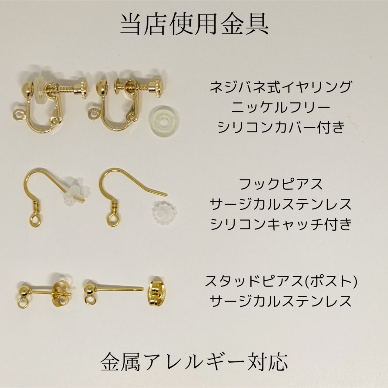 当店は金属アレルギー対応をしておりますが、全ての金具が対応しているわけではございません。