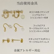 イヤリング、スタッドピアスにも無料で変更承っています。金具変更オプションからお選び下さい。