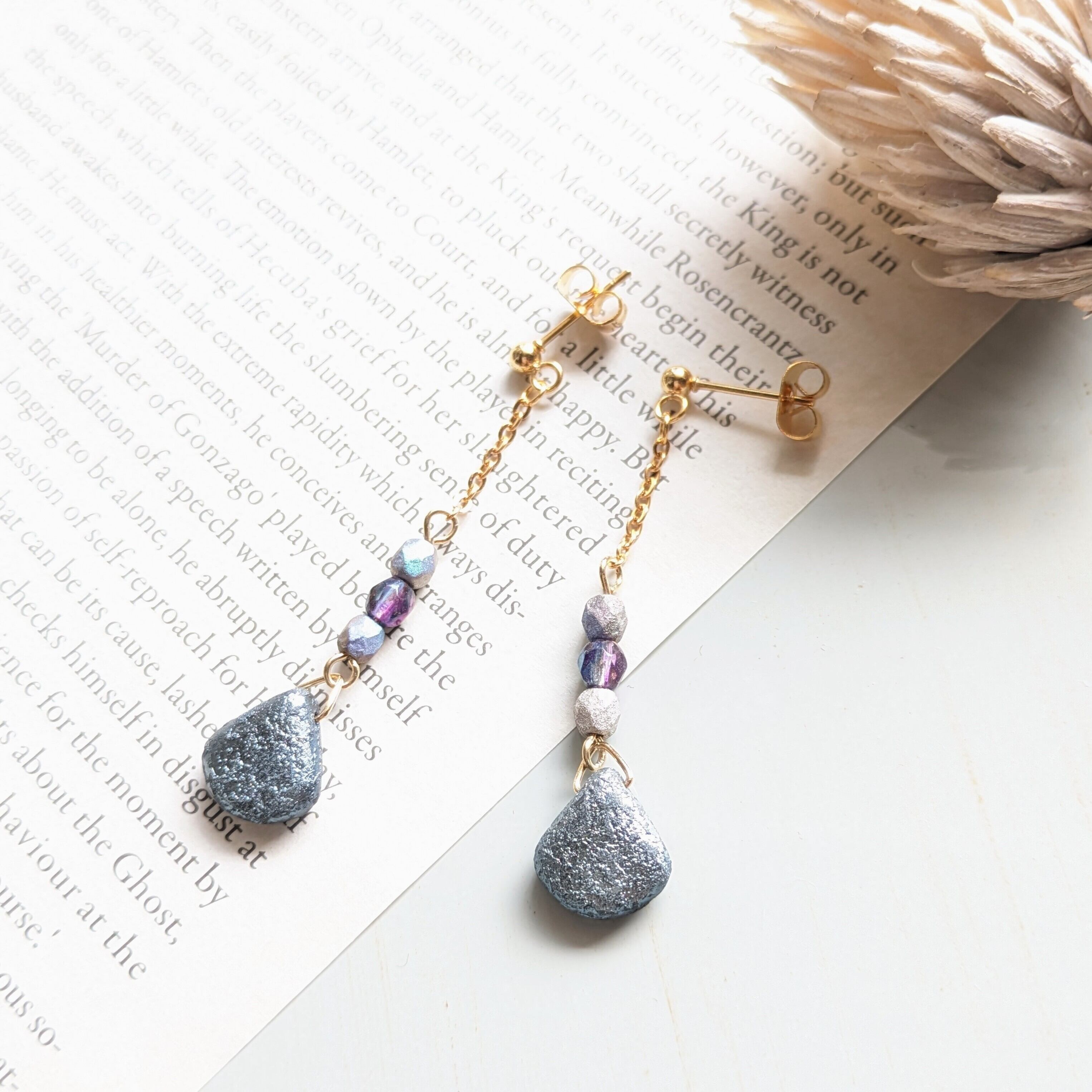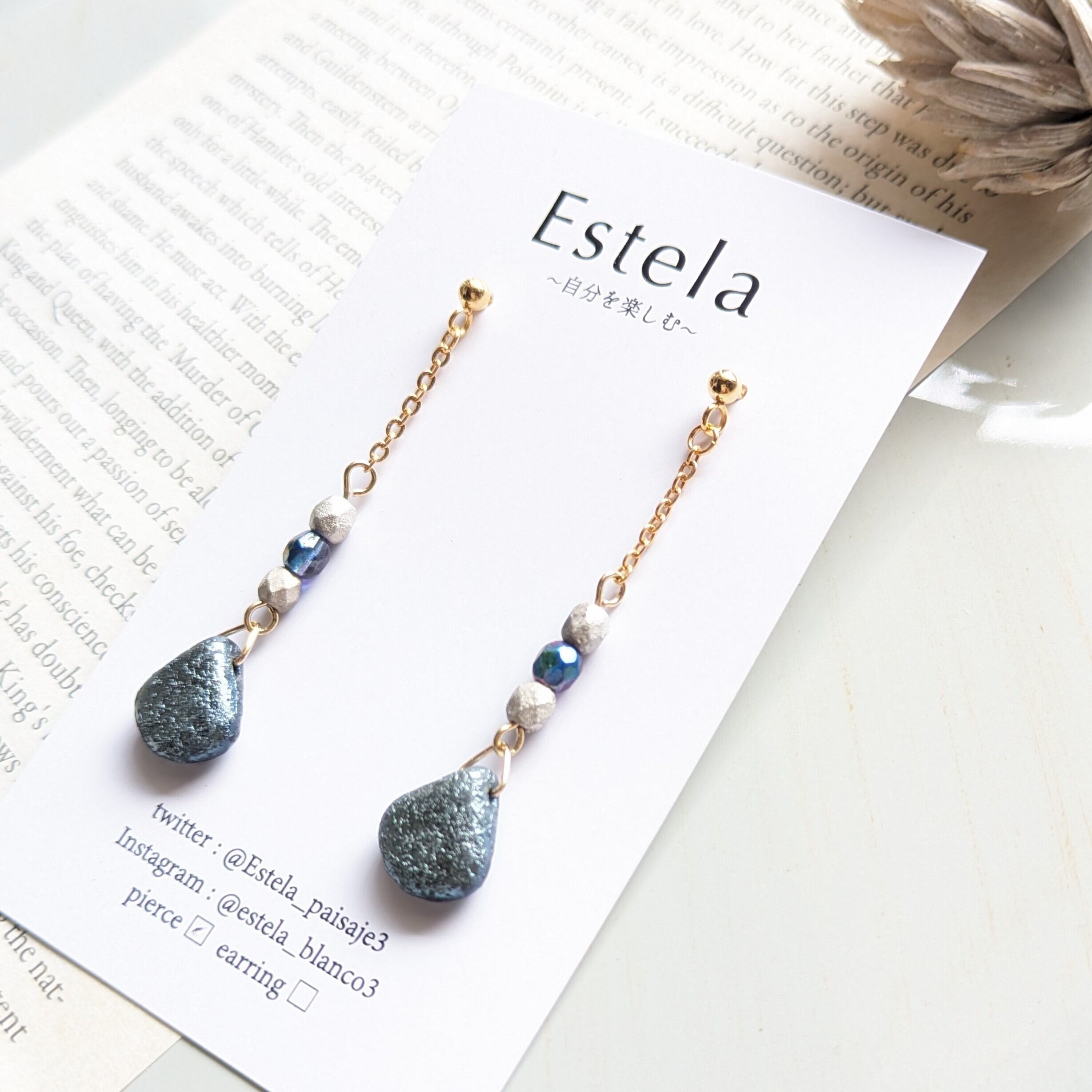 シェル風フラットドロップのピアス ブルーアンティークシルバー