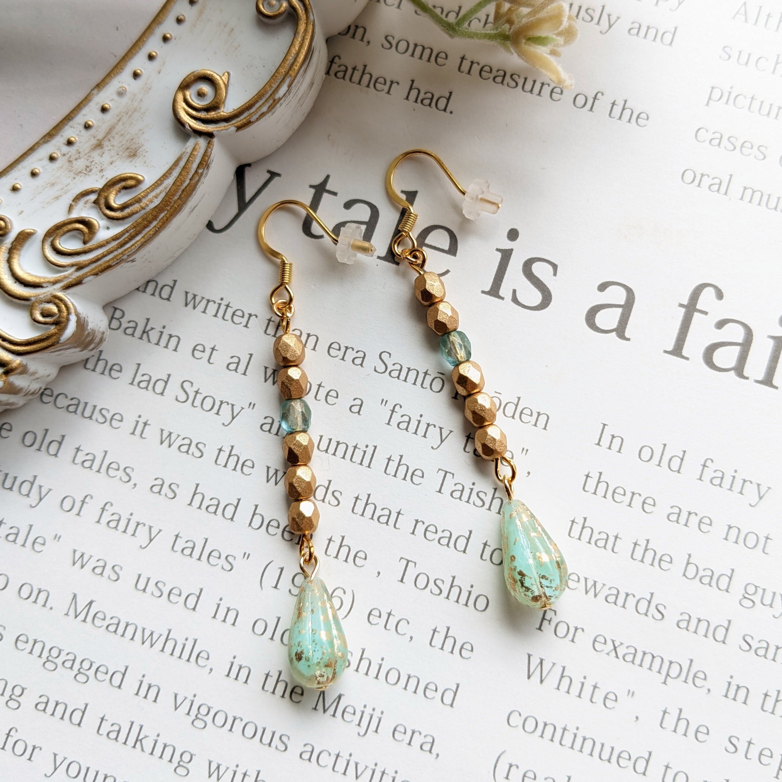 マットゴールドとミントグリーンのメロンドロップ ピアス/イヤリング