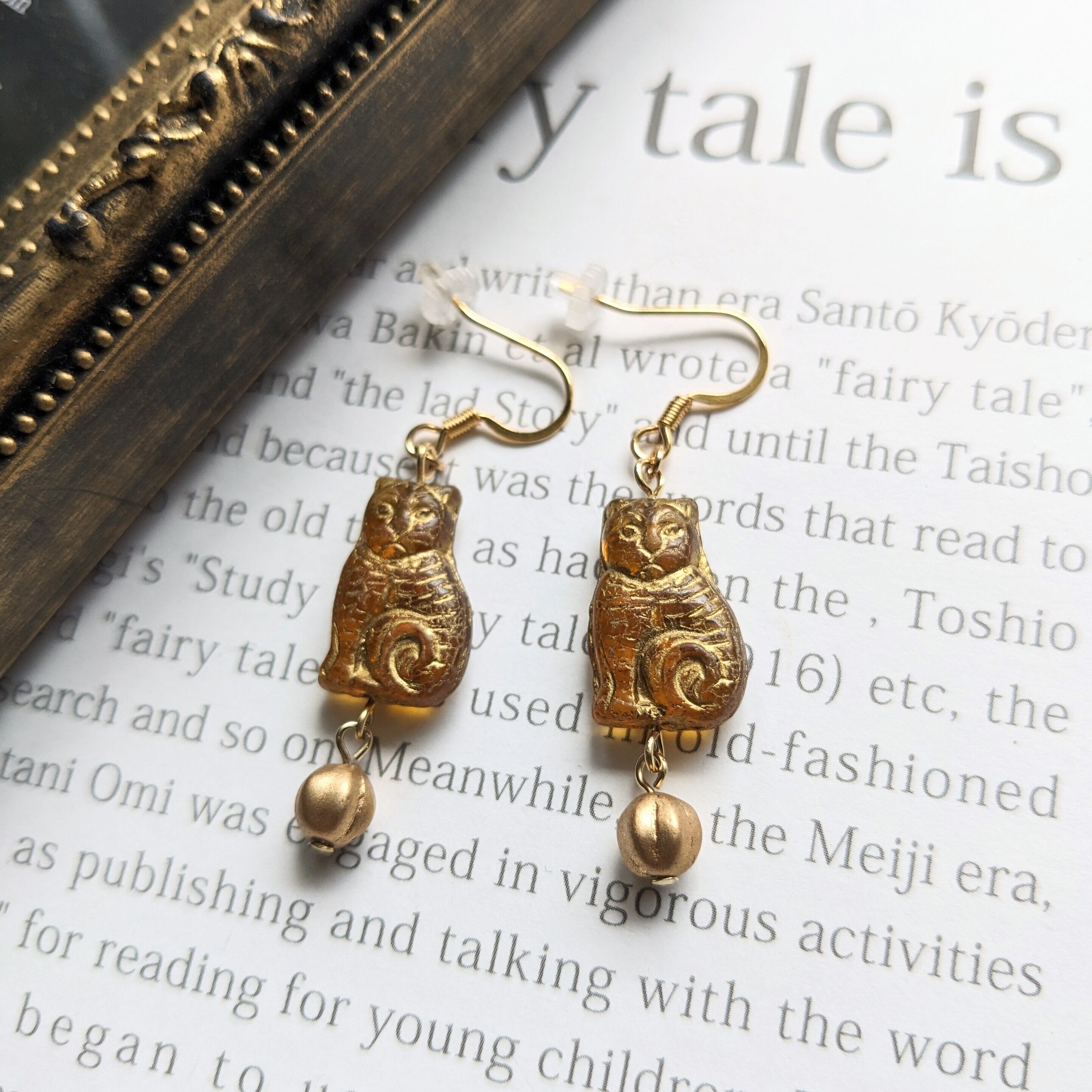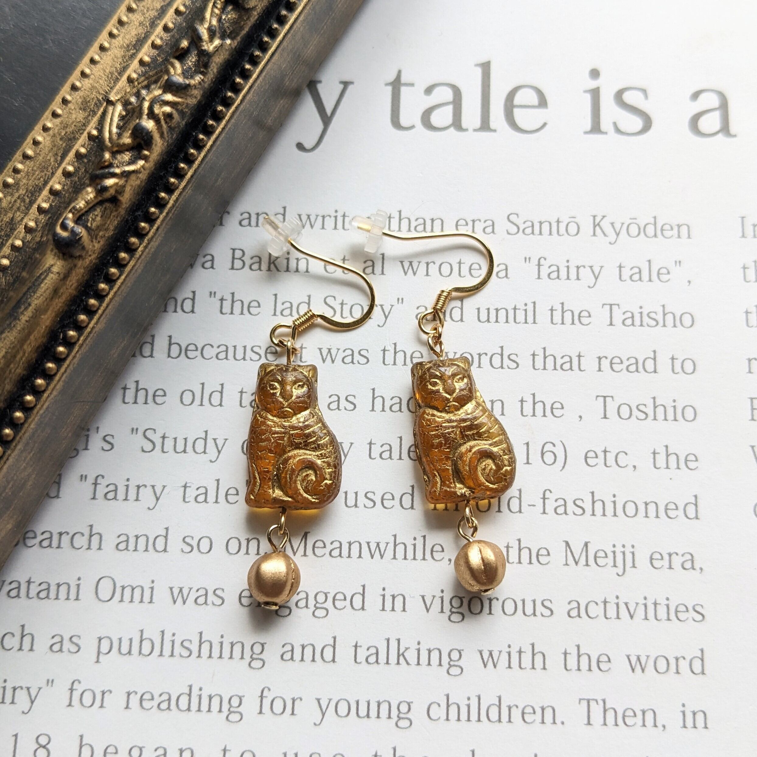 アンティーク感漂うトパーズカラーの大人っぽい雰囲気のボーダーキャット。可愛い後ろ姿もある猫好きにはたまらない遊び心のあるデイリーに使えるピアスです。