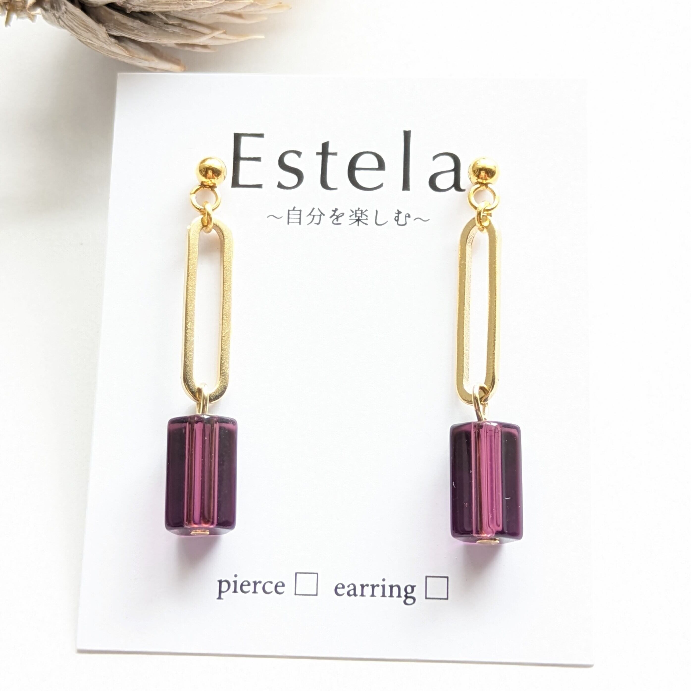 アトラスビーズロング 長方形ロング アメジスト ピアス/イヤリング