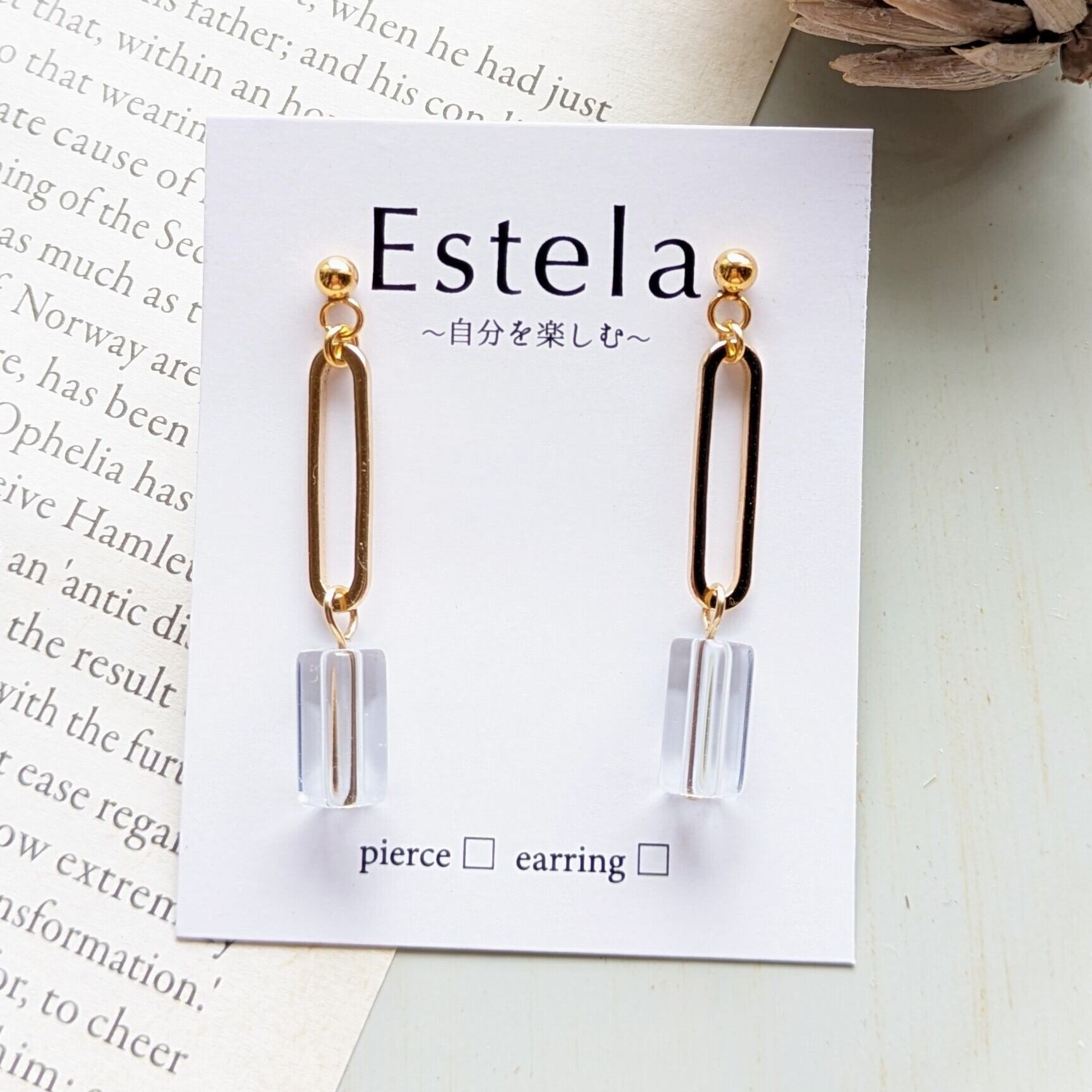アトラスビーズ 長方形ロング クリスタル ピアス/イヤリング