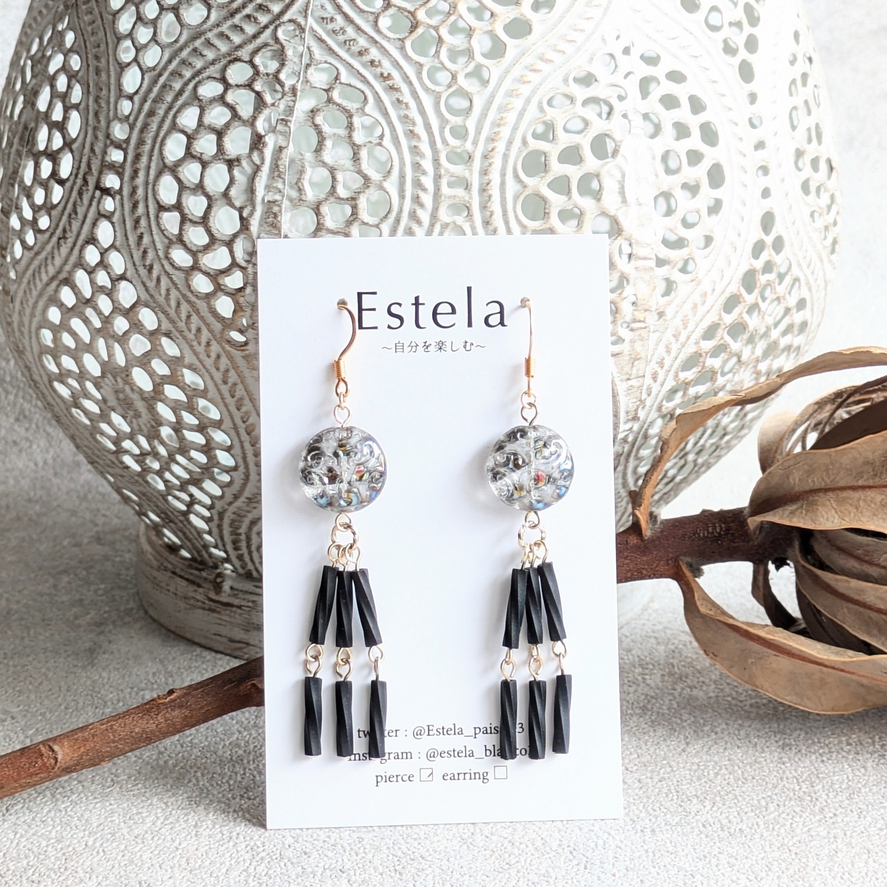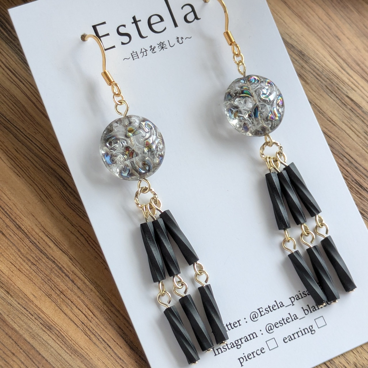 《宵影 》― ブラック×シルバーメタルの揺らめきピアス/イヤリング 「煌めきのフリンジ」シリーズ