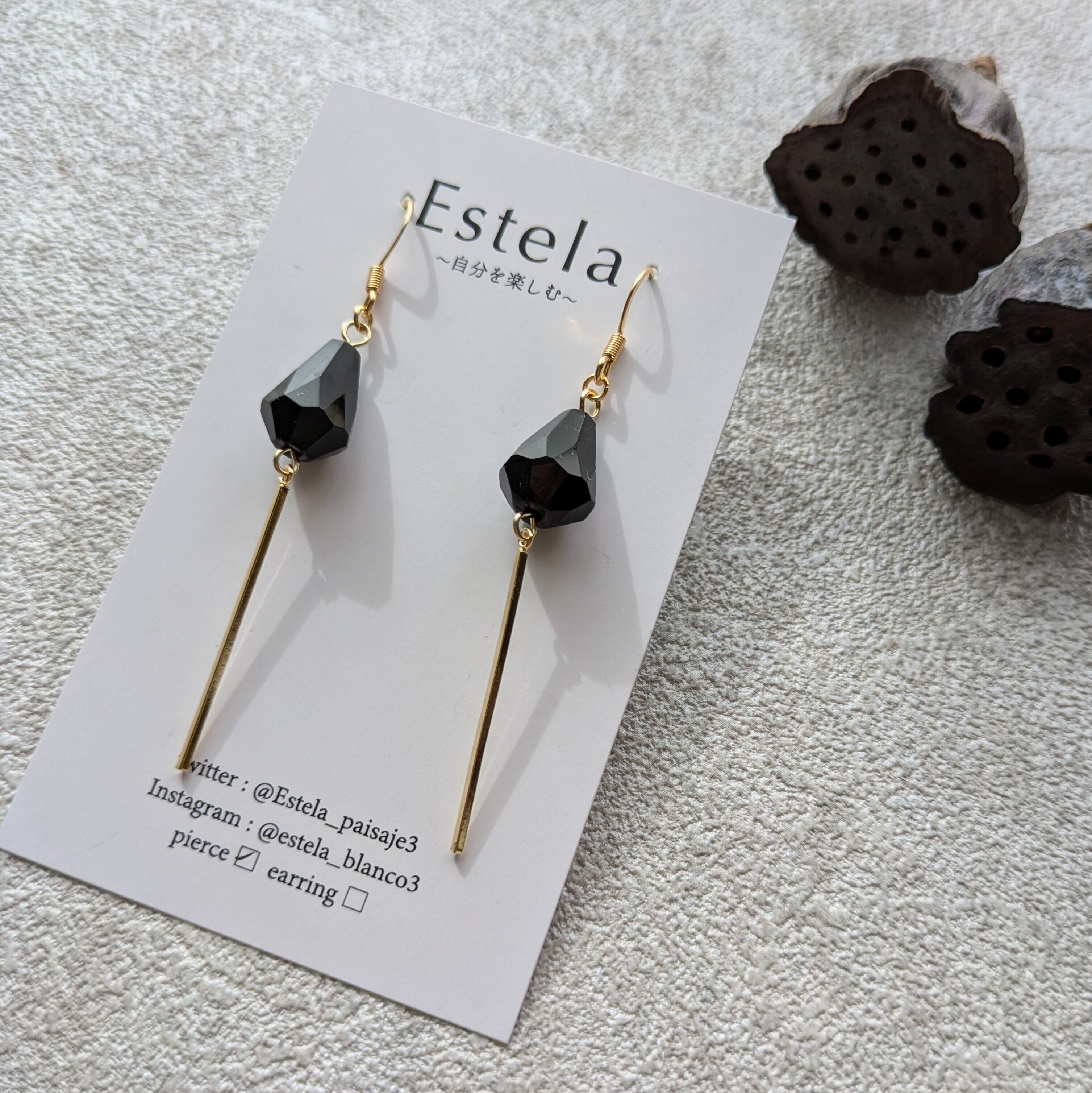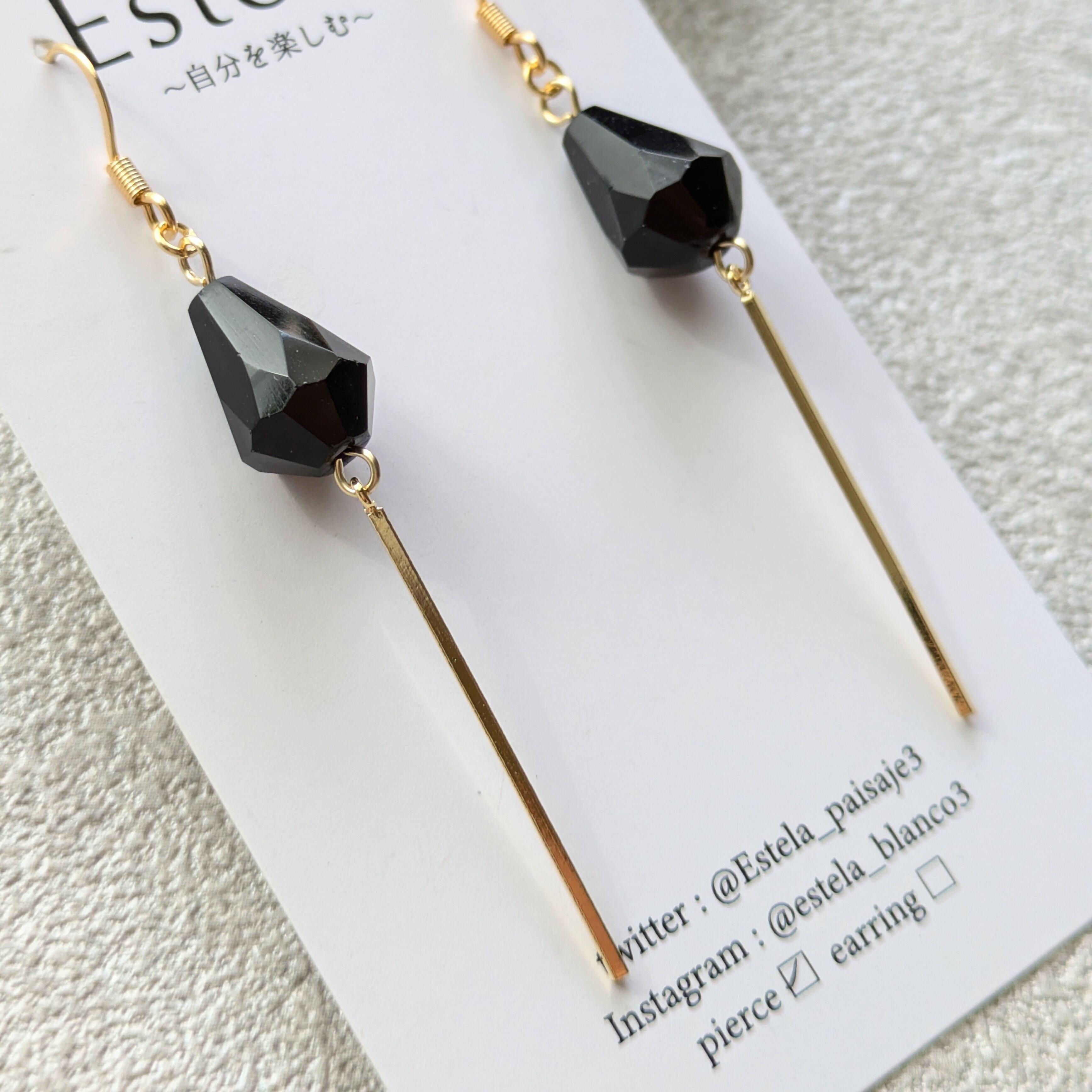 洗練されたスタイルを演出するブラックカットドロップと、華やかさを添えるゴールドバーが絶妙に組み合わさったスタイリッシュでお洒落なピアス/イヤリングです。シンプルながらも存在感のあるデザインは、カジュアルからフォーマルまで幅広くご活用いただけます。特別なシーンにも普段使いにも、あなたのファッションを引き立てるアイテムです!