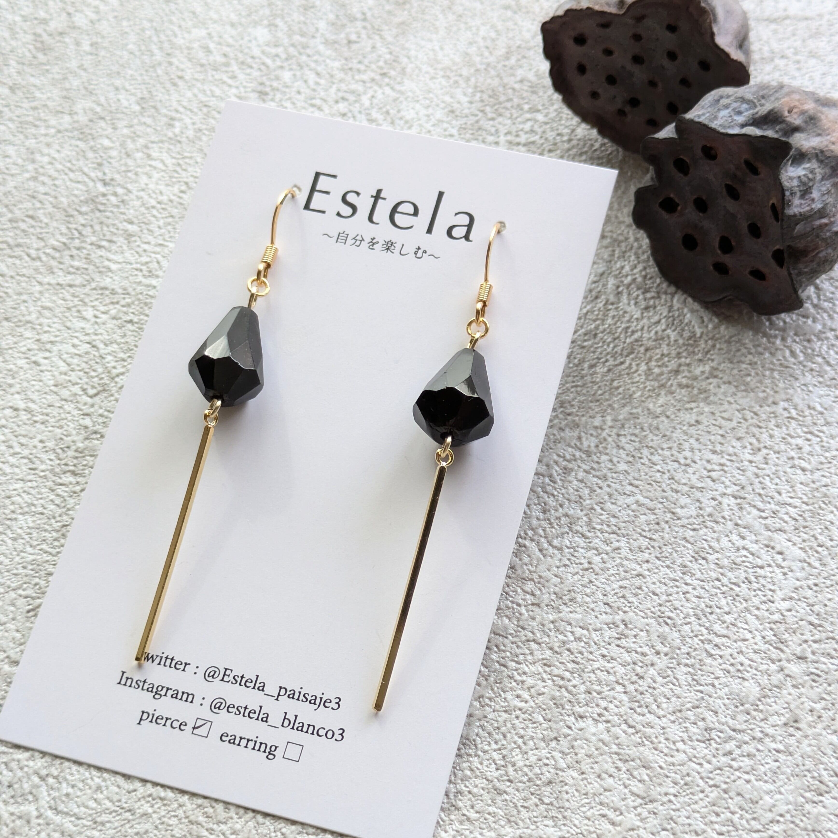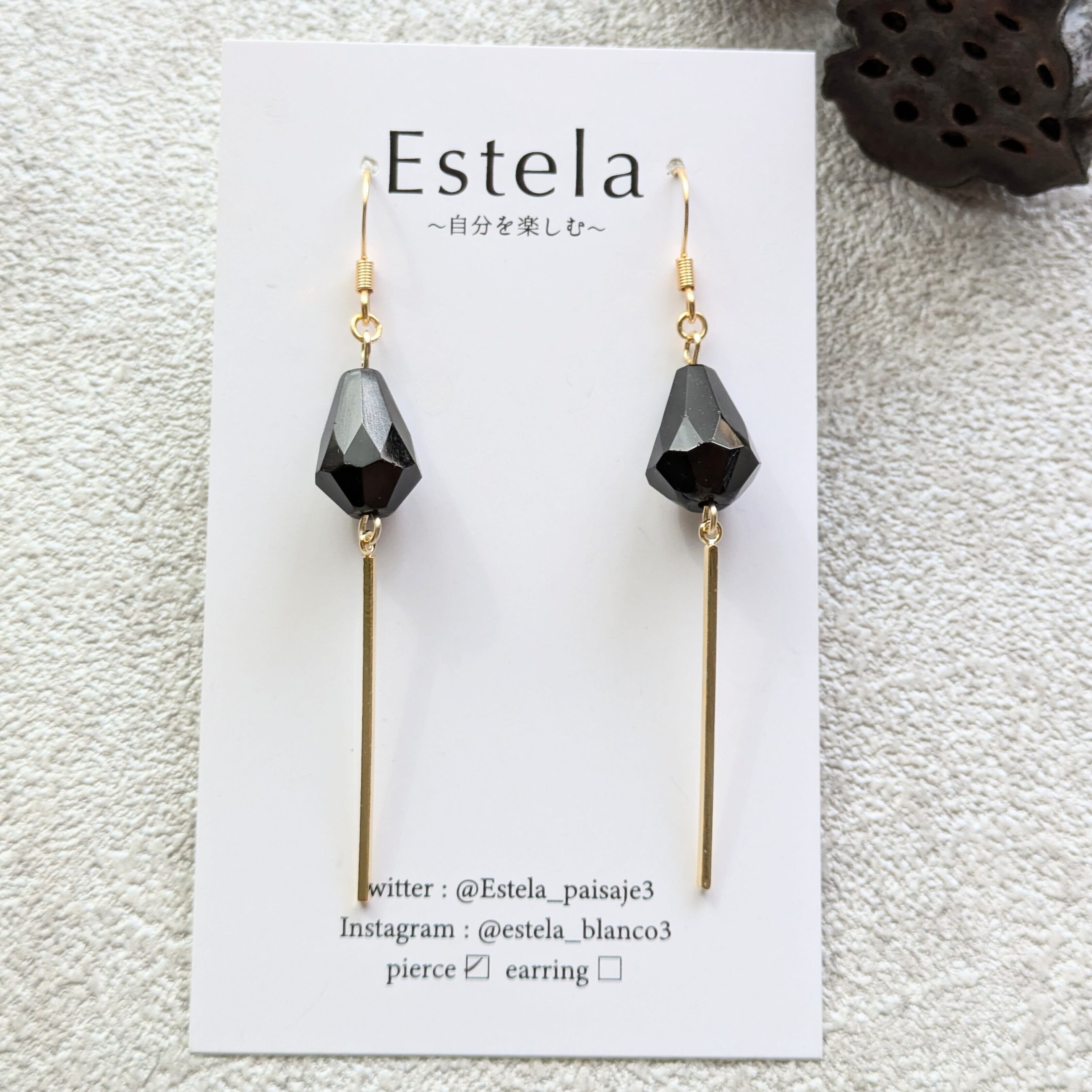 ブラックカットドロップとゴールドバー ピアス/イヤリング
