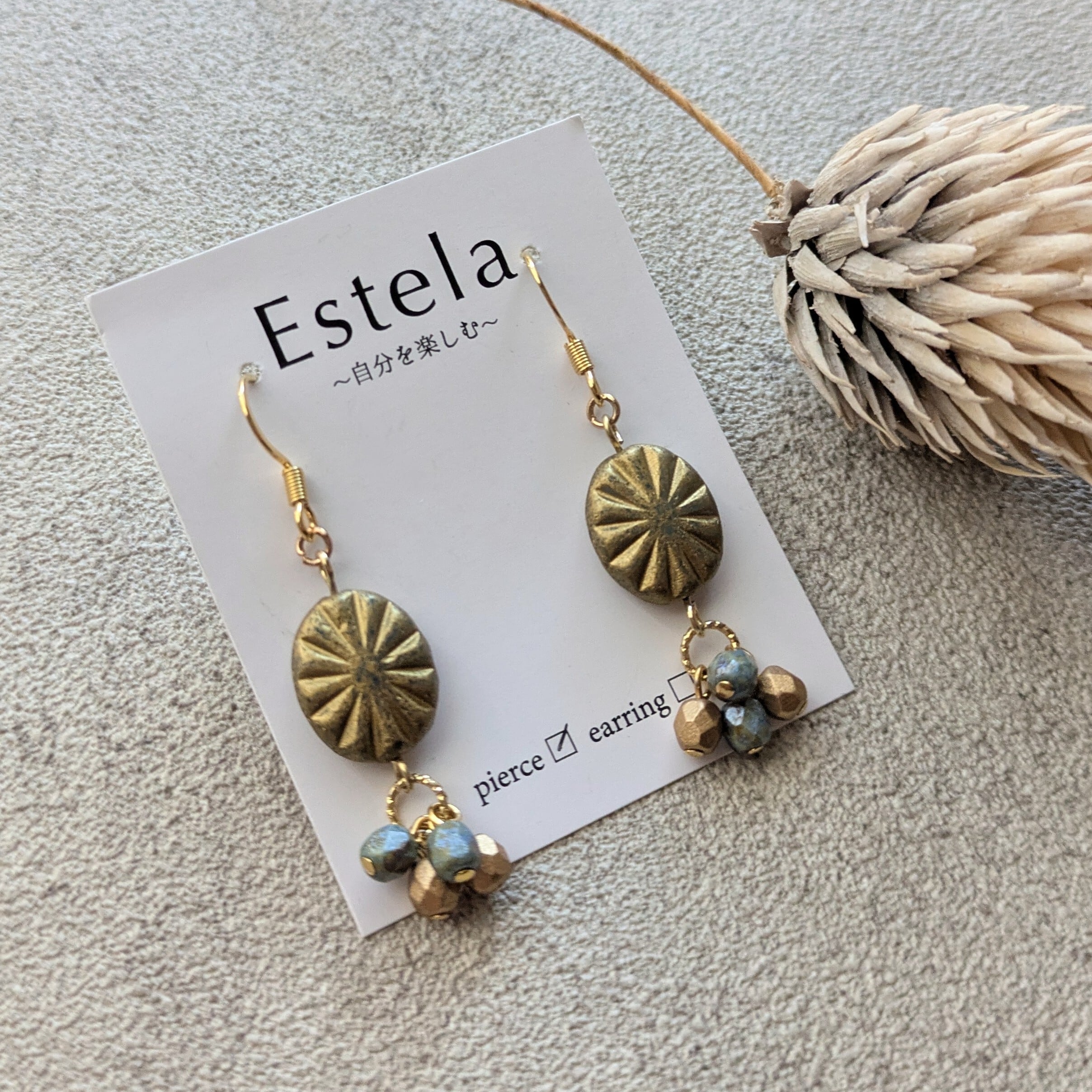 【Sale】フレアラインアンティークゴールドとブルーピカソ ピアス/イヤリング
