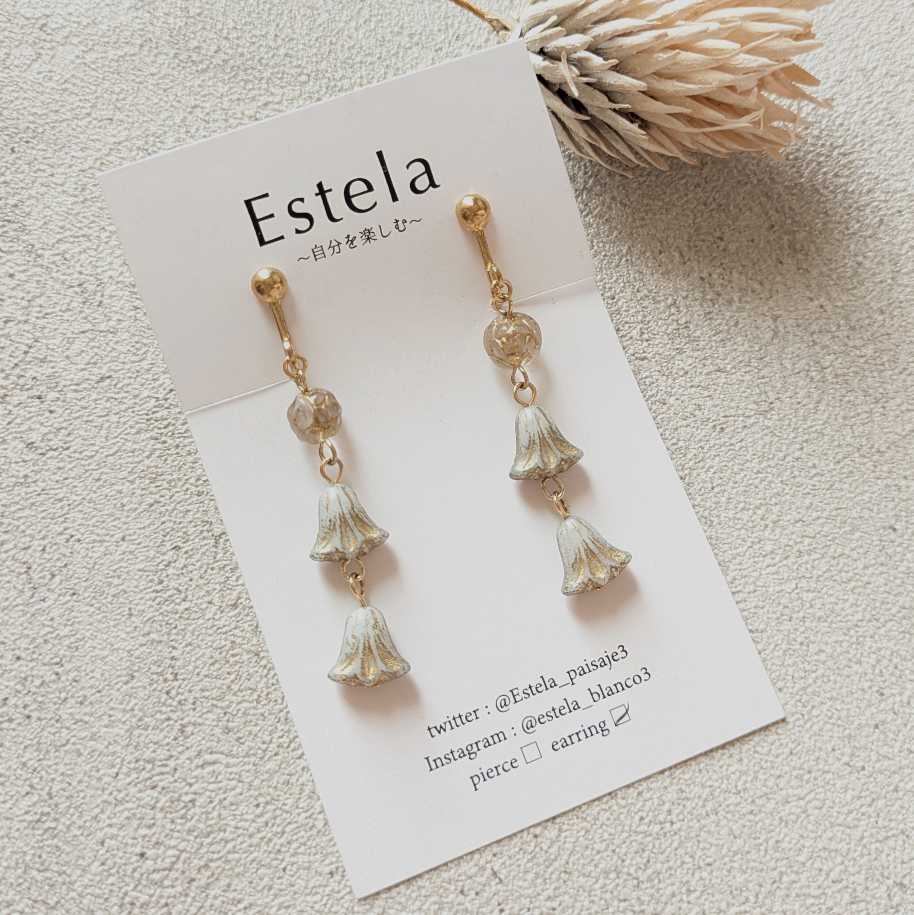【Sale】グレーリリーとクリスタルな蕾のイヤリング